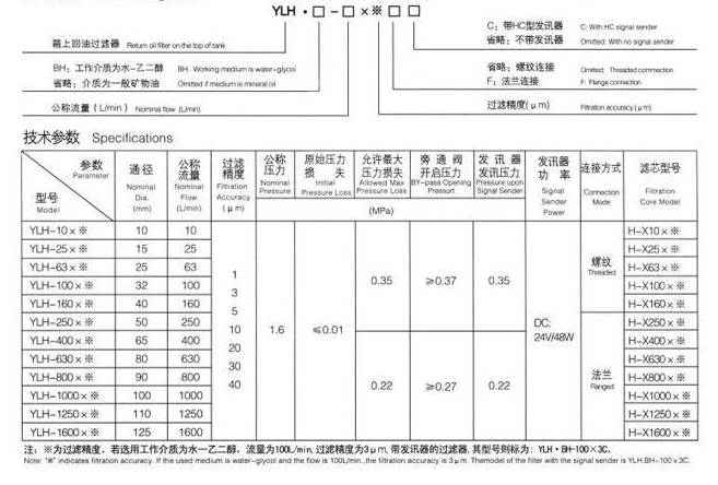 箱上回油過濾器YLH-100*10LC技術(shù)參數(shù):